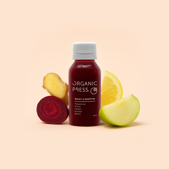 A gut-friendly blend of ginger, beetroot, lemon, apple, and 30 billion probiotics to support digestion and reduce inflammation.