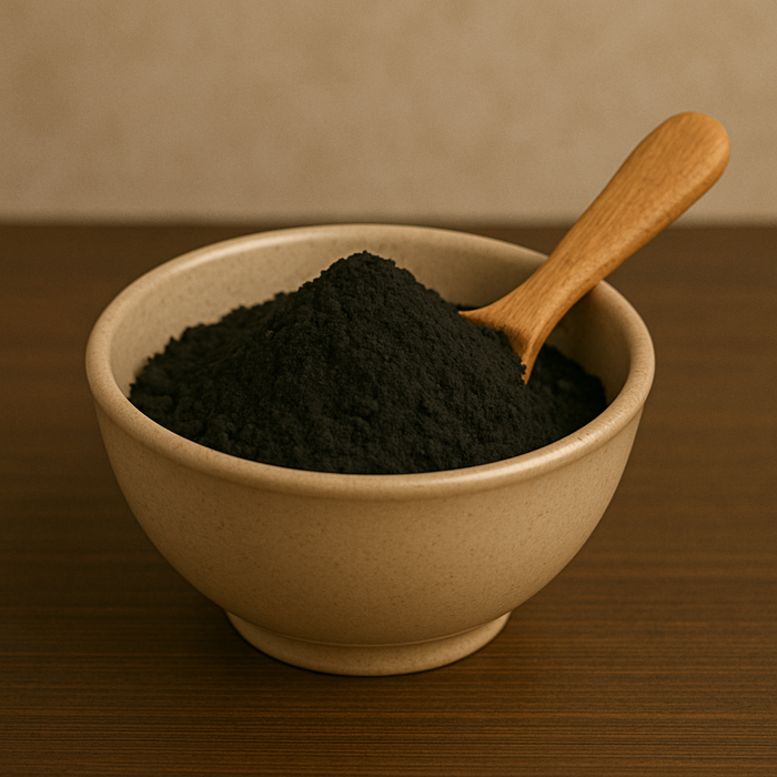 A fine black powder known for its powerful detoxifying properties, often used to support digestion and eliminate toxins.
